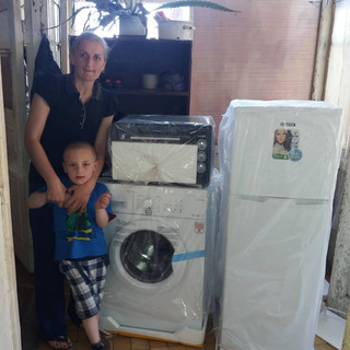 We also took them so many things that the whole family didn't know which item to be happy for. The most important thing that we took them were 2 pigs and many chicks, which will bring quite a lot of income per year. Of course, we also took them an automatic washing machine, a refrigerator, an electric oven, food to last them more than a year, clothing for the whole family and toys for the children.