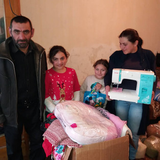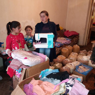 The mother now has a very expensive modern sewing machine with many sewing capabilities to do everything possible to make money at home. We also took her some bedding and towel material, various details for sewing, scissors, meters, threads, needles, etc. She will now be able to make and sell many items in addition to taking orders for alterations. By the way, during our visit, she said she was eagerly waiting for the sewing machine and had already received an order to make a coat