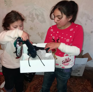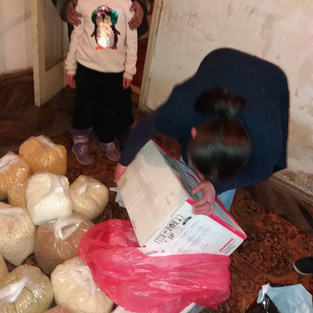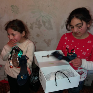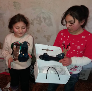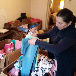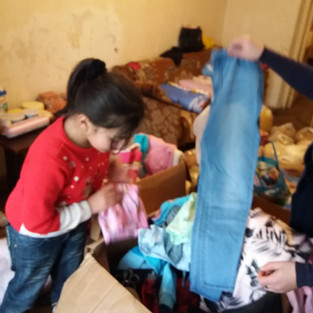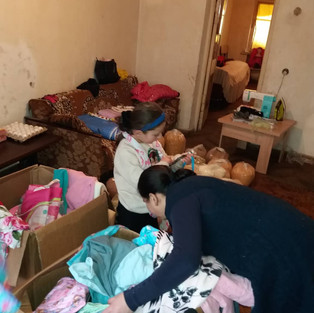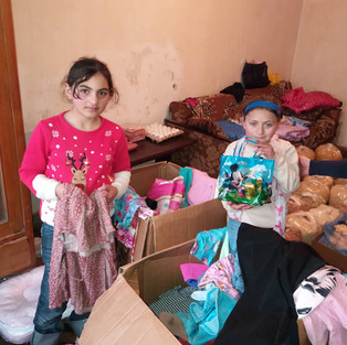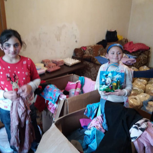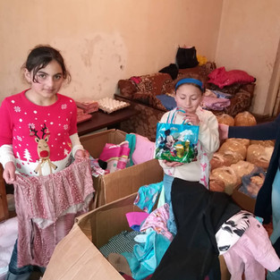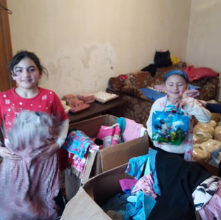 As for children, I would say that the children were extremely happy. We had countless clothes, shoes, and school supplies for them. The clothes were for all family members for all seasons. The children were passing from one box to another, trying different clothes, delighted with every detail, and the parents were just astonished. Besides the above, we had a lot of food for the family, especially long-lasting food, which will last them for more than a year.