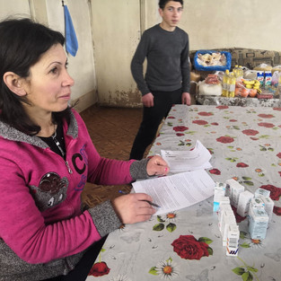 Today our group visited the family in Lchavan village in Gegharkunik province. The village was hard to get through because of a snowstorm and the road was almost impassable because of the severe weather. This village was located on the mountain top and the roads were almost closed due to the snowstorm.