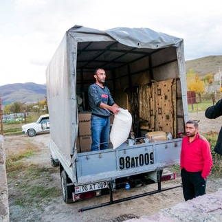 Yelena Magoyan's family was the 4th from our visit. Before we could reach them, Elena had managed to make cheese from the cow's milk(which we delivered to her a few days before our visit). As you may already have guessed, we gave this family a pregnant cow, a refrigerator, an electric oven, food and clothes to last them for about a year plus toys for children.